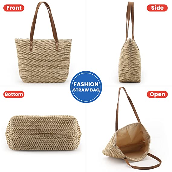 Ideal as shoulder bag, beach bag, handbag, tote bag and so on, Perfect for daily life, travel, beach, vacation, dating, party etc. Matches with a variety of outfits, and adds some sparkle to your life with this eye-catching straw bag.