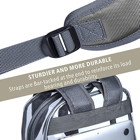 Reinforced Padded Straps - Straps of clear bookbags are Bar-tacked at the end to reinforce its load bearing up to 65lbs. Soft-padded straps provide you with comfortable wearing experience. Length of the strap can be adjusted from 16" to 31".