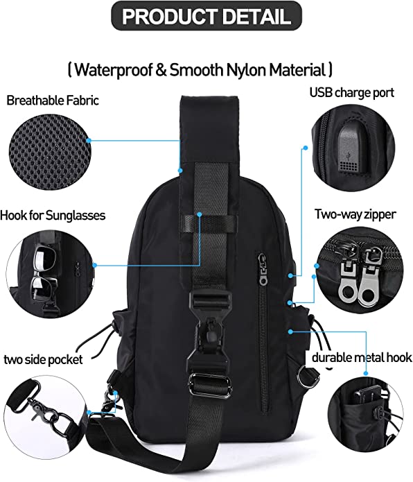 ✅【High Quality Material】Shoulder bag for men women is made of high-quality nylon, waterproof, dirt-resistant, lighter and more easy to take care of. Shoulder backpack with excellent workmanship can show your outstanding temperament. Lightweight crossbody backpack bags sits nicely and freely on your back/chest and if this hiking bags for men gets durty, only just need wipe it off to stay it clean.